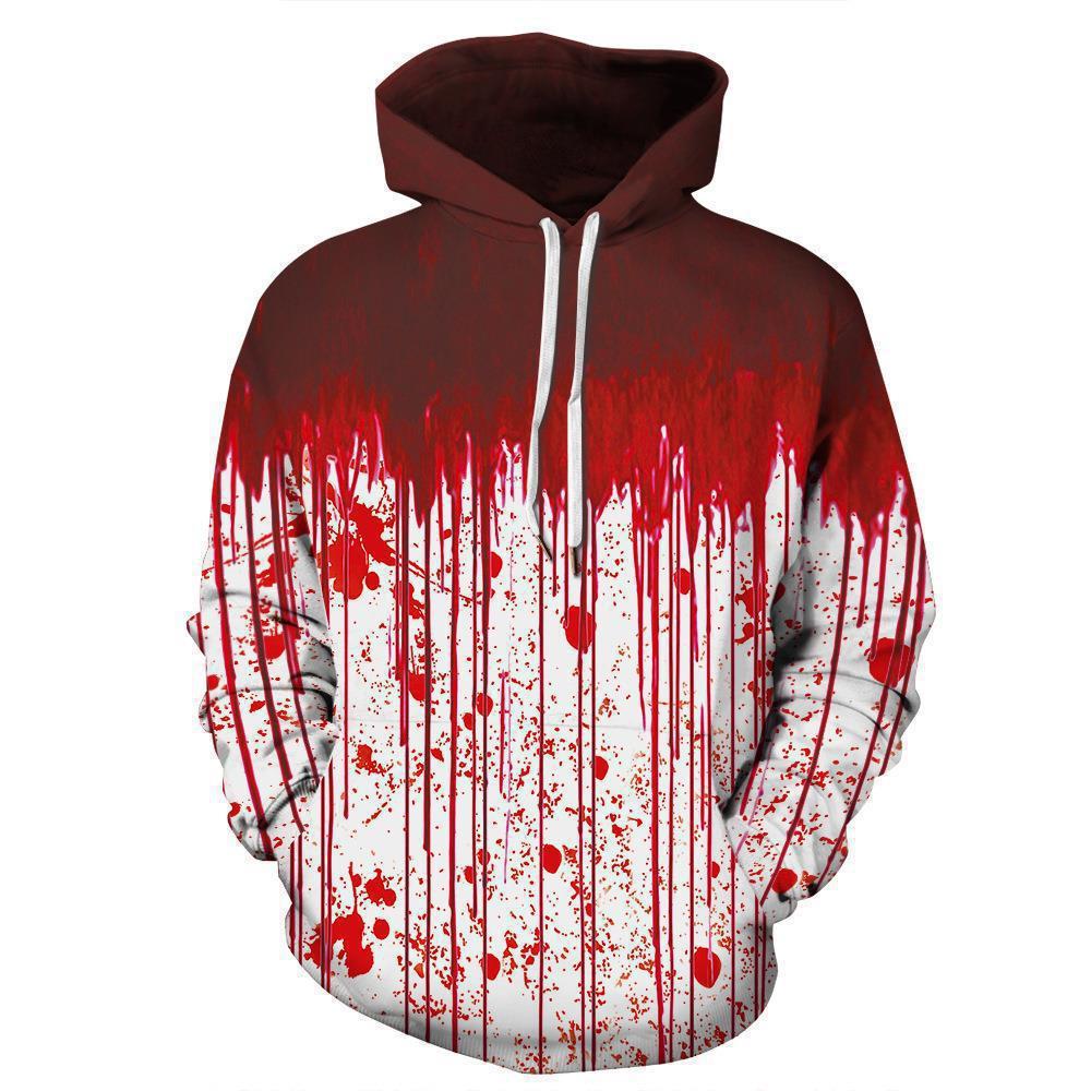 New Halloween Blood Drop 3D Digital Printed Couple Wear Long sleeved Hooded Sweater Casual Fashion Brand Pullover