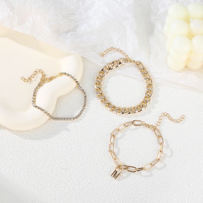 New fashionable and minimalist gold thick and thin chain lock pendant set of 3 bracelets and bracelets