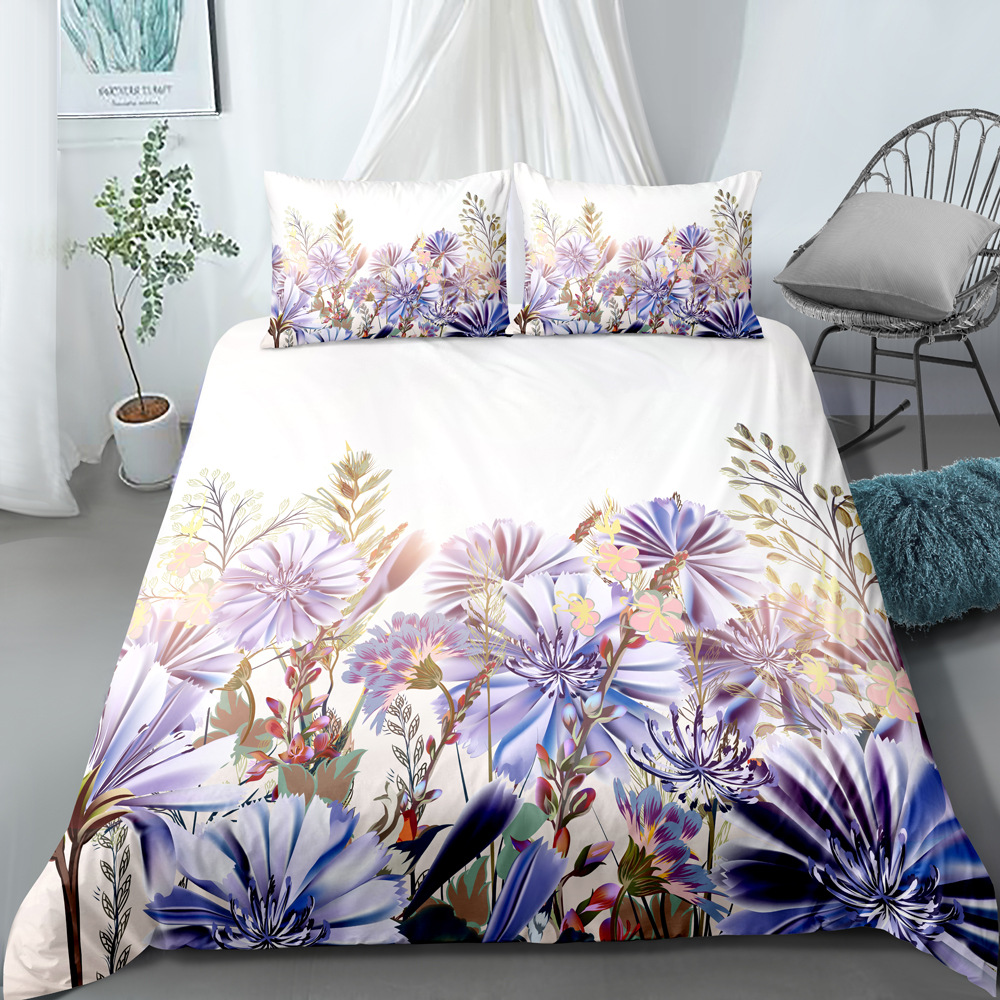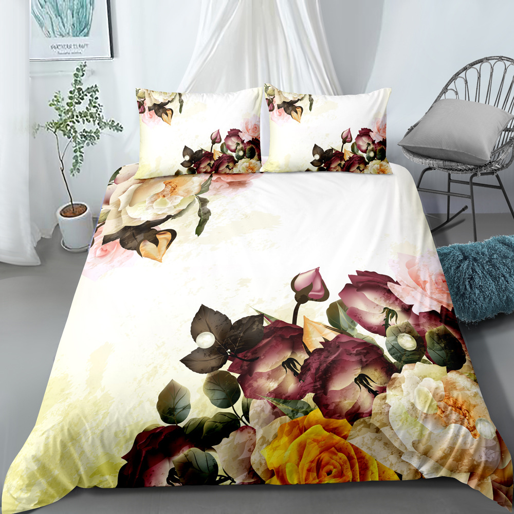 New plant flower bedding and pillowcase three piece set with digital printing of 90g brushed home textile can be