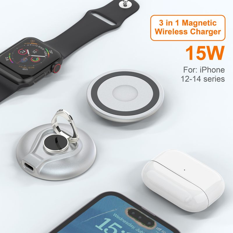 New Ring Bracket Magnetic Multifunctional Three-in-one Wireless Charging Is Suitable For Apple Mobile Phone Charger Set.