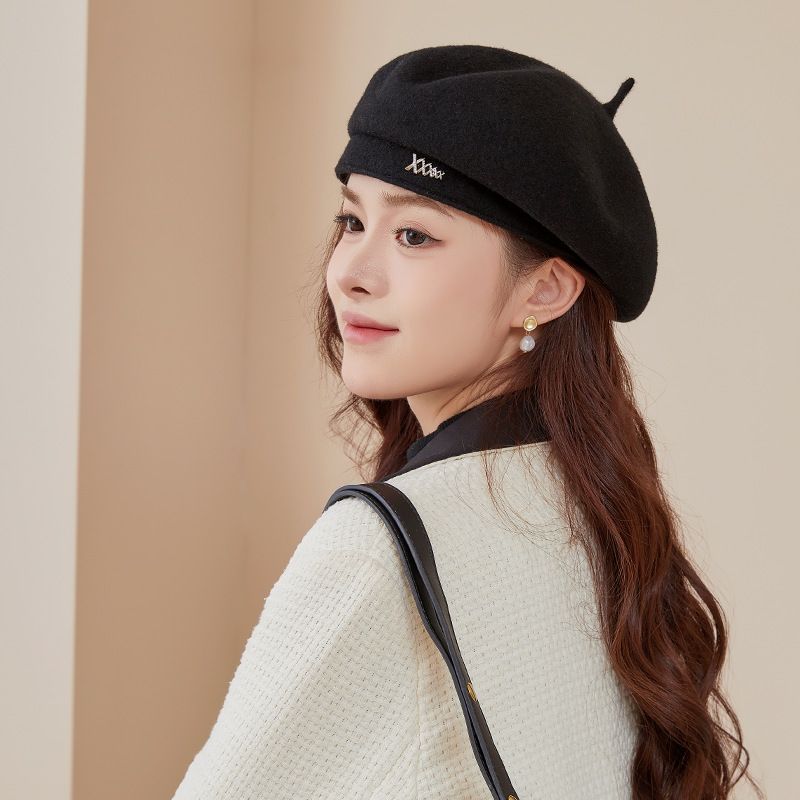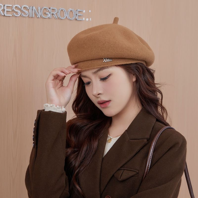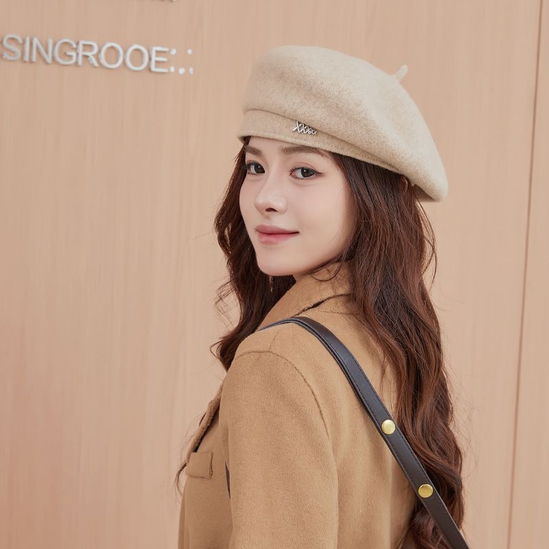 New Wool Beret Women's Big Head Circumference Solid Color Versatile With Logo Artist Autumn And Winter Korean Version