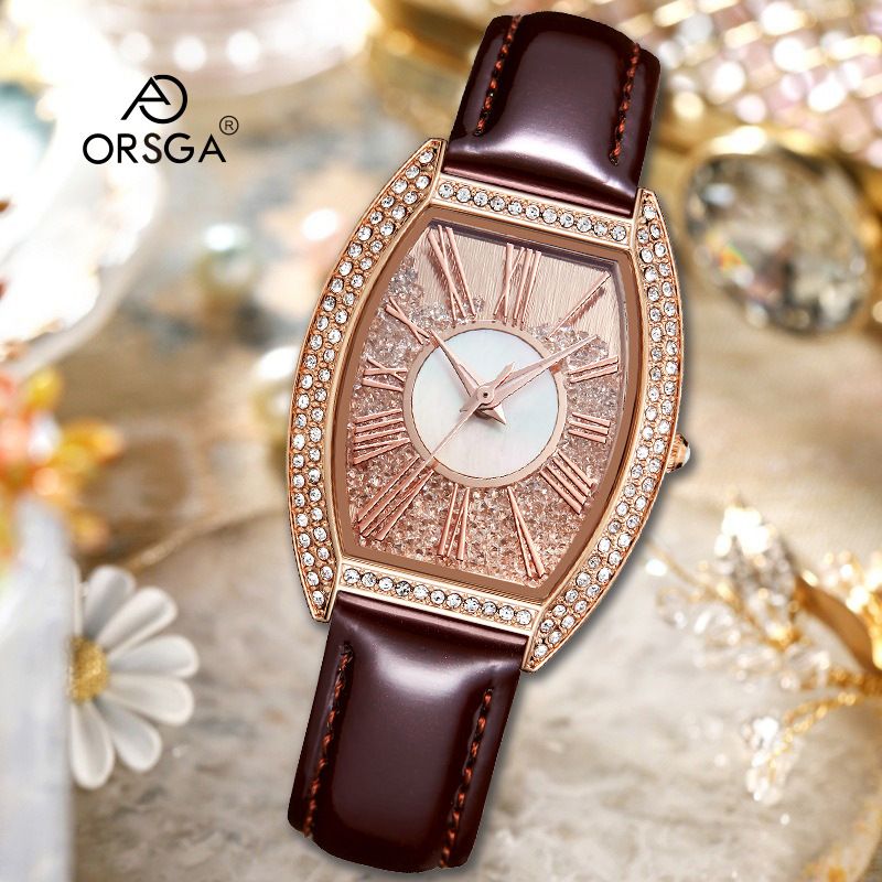 Oushijia Fashion Diamond Set Elliptical Women's Watch Light Luxury High End Rose Gold Live Quartz Watch