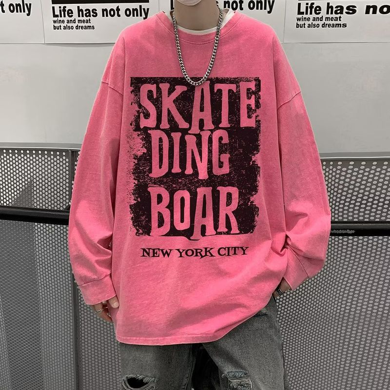 Washed and worn long sleeved T-shirt for men in autumn 2023, new American fashion brand printed sweatshirt base