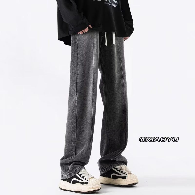 Washed denim jeans men's spring American high street oversized pants trendy brand loose straight leg pants