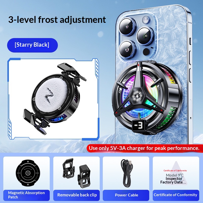 Phone Cooler Semiconductor Ice Magnetic Absorption Digital Display Three-Level Adjustment RGB Lighting Silent Cooling