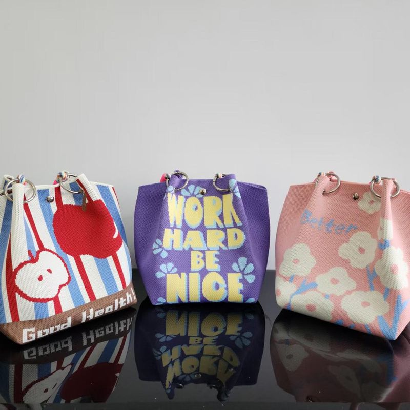 Phone Bag Knitted Fresh Cartoon Summer Cute Coin Purse Round Handheld Small Square Bag Lunch Bag Handbag