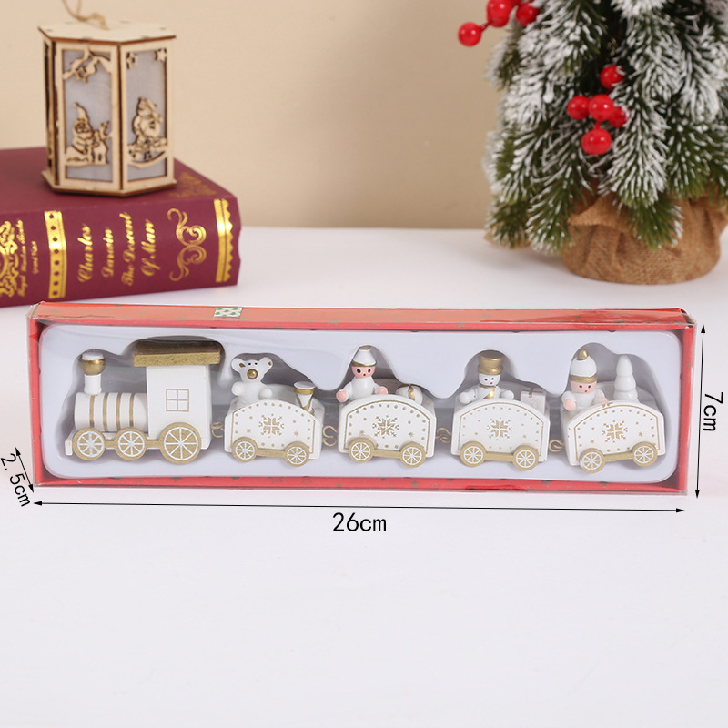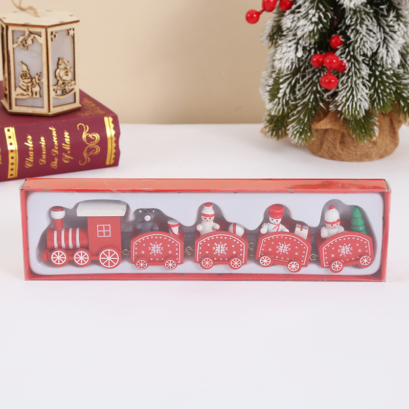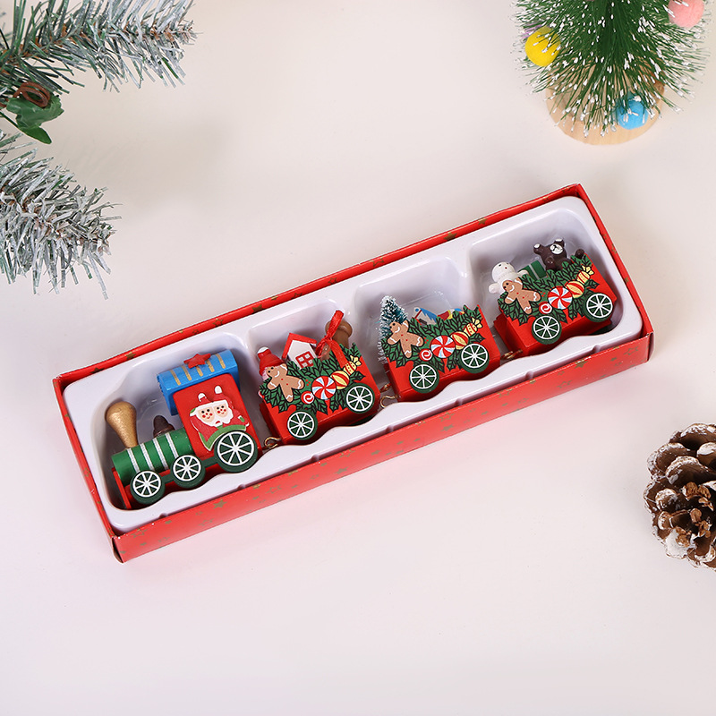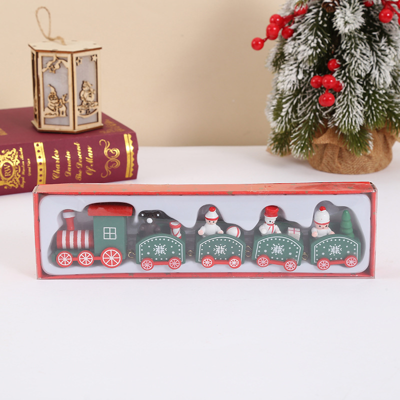 Piiriülesed jõulukaunistused puidust neljaosaline rong laste pühadekingitused akna töölaua ehted