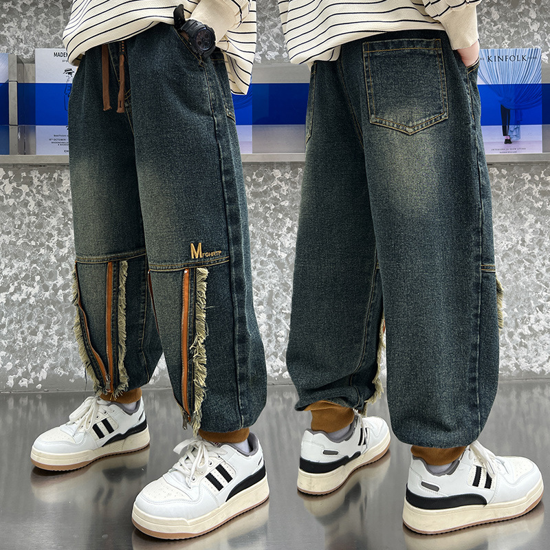 Boys' pants for spring and autumn 2024 new style, suitable for middle-aged and large children, boys' autumn clothing, children's cartoon printed jeans, casual trend
