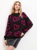 Sweater loose and lazy women's round neck pullover with heart-shaped contrasting color sweater loose pullover knitted sweater