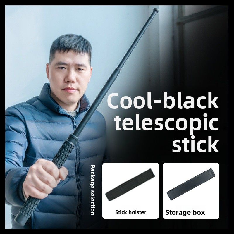 Self-defense Police Swing Stick Pure Black Swing Stick Rhombus Rubber Retractable Legal Vehicle Self-Defense Weapon Three Sections