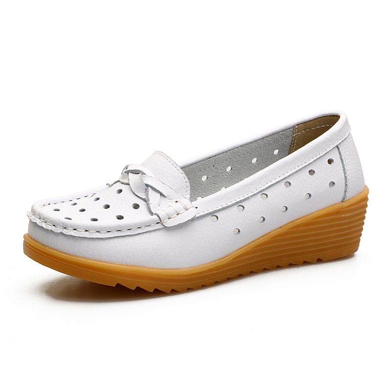 ShoeGlobe Cross-Border Spring Autumn New Cowhide Middle-Aged And Elderly Mom Women's Single Loafers Soft Sole Wedge Nurse Shoes