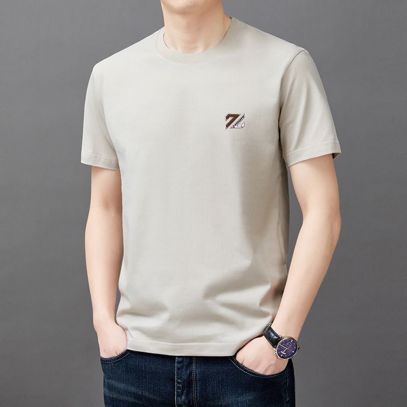 Short sleeved T-shirt, men's versatile round neck print, 2024 summer cool and loose fitting T-shirt, middle-aged pure cotton thin top