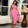 Naiste riided Seksikas ühevärviline U-kaelusega ripats, kõrge vöökohaga lõhikuga pika seelikukomplekt