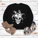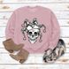 Simple Pullover Crew Neck Top Long Sleeve Bone Print Loose Sweatshirt