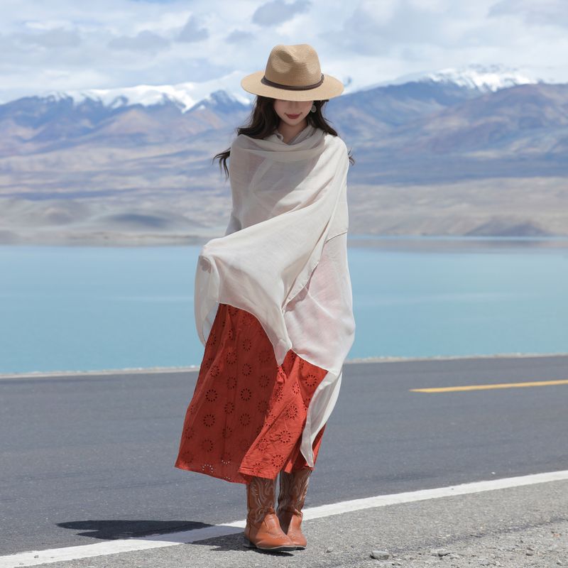 Spring And Autumn Oversized Cotton Linen Solid Color Ethnic Style Vacation Sun Protection Shawl Beach Towel Silk Gauze