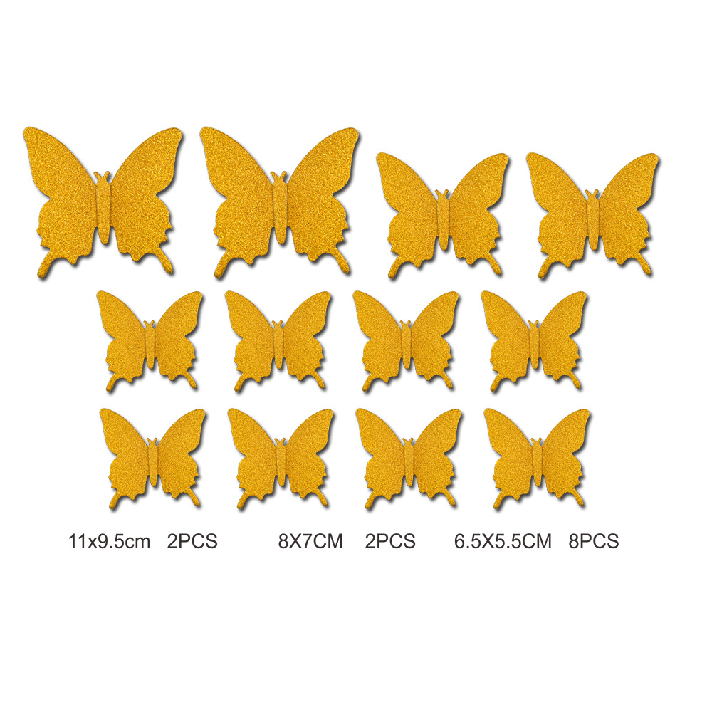 Note: The mirror butterfly is made of PET, and the onion powder butterfly is made of paper. Each package is equipped with Double-sided tape
