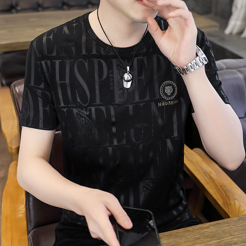 Summer Ice Silk Short Sleeve T-shirt for Men's 2024 New Half Sleeved T-shirt Trendy Brand Instagram Trendy Loose Size Clothes