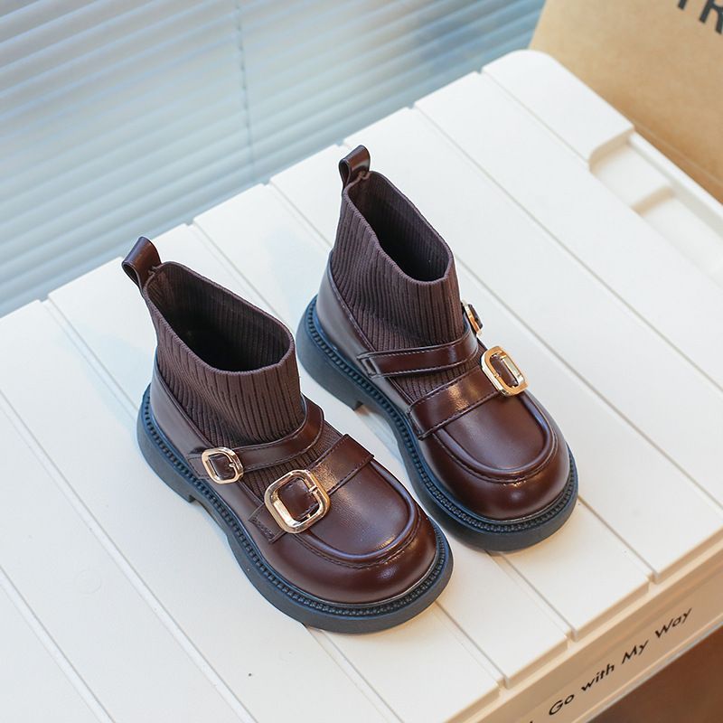 Tüdrukute saapad, välismaise stiili sokid, kevad- ja sügissaapad, uued, väikese tüdruku Briti stiilis lühikesed saapad, beebide pehme tallaga nahksaapad
