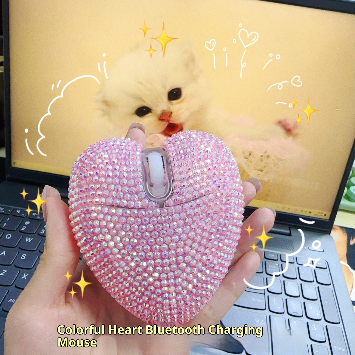 Brand:Powerful,Type:Optical Mouse,Number of Buttons:3,Interface:USB,working method:Optical,Color:Wired Diamond-Studded Heart Mouse with 1.5m Meters Cable, Colorful Diamond-Studded Heart Wireless Mouse with Bluetooth Charging Version