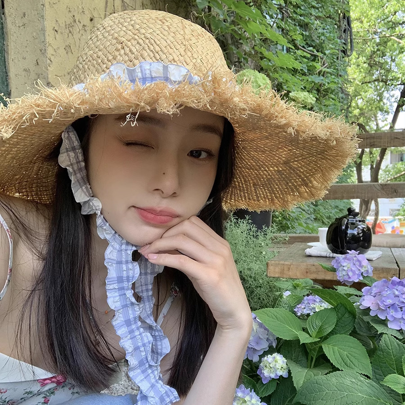 Small Fresh Strap Lafite Straw Hat for Women Summer Big brim Beach Sunshade Hat Summer Sunscreen Beach Vacation Beach Hat