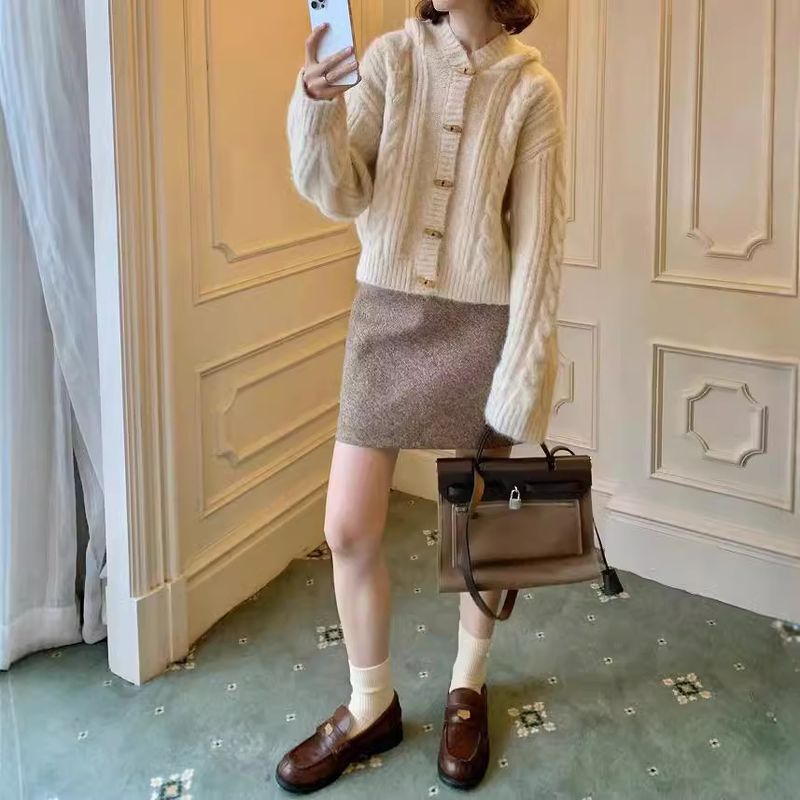 Windbreaker Hoodie White Bear Chocolate Soft Alpaca Wool Lazy Style Sweater Braided Horn Button Knitted Cardigan