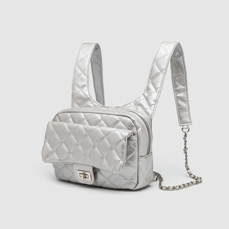 Silver diamond grid fashionable backpack for women 2025 new large capacity fashionable backpack small fragrance chain commuting bag trend
