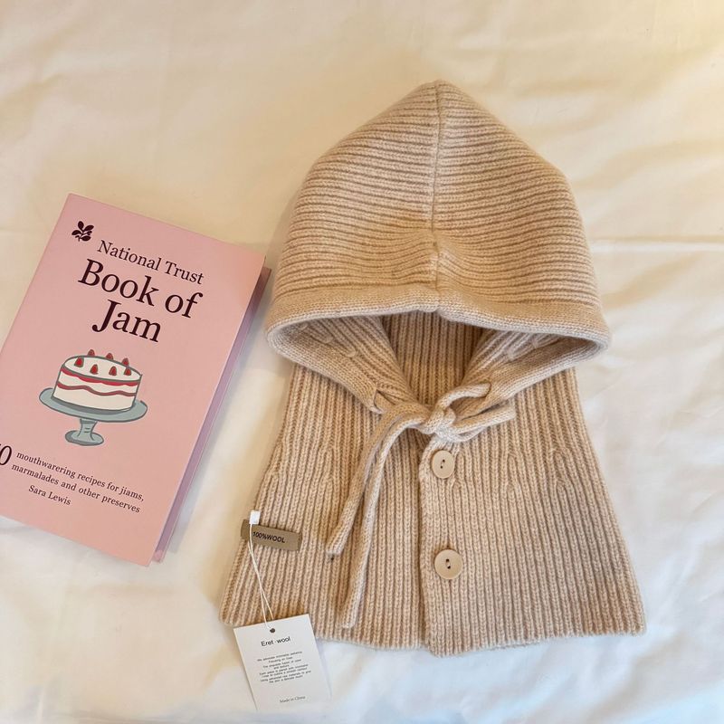 Korean-style women's balaclava hat, pure wool winter warm version, knitted hat with neck warm design and ear protection function.